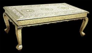 Item Description : Coffee table made of white metal (German silver) mounted on wooden handicraft furniture in floral emboss design.